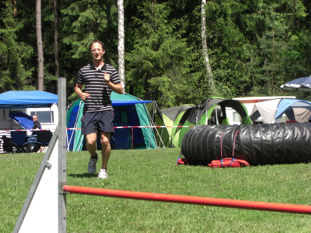 Für den ersten Start und ohne Pacourbegehung echt super. Leider hat Marco vor dem Sacktunnel vergessen das es sich bei Agility um einen Mensch mit Hund-Sport handelt und das vierbeinige Geschöpf neben ihm außer rennen auch noch ein paar Hindernisse zu überwinden hat...
