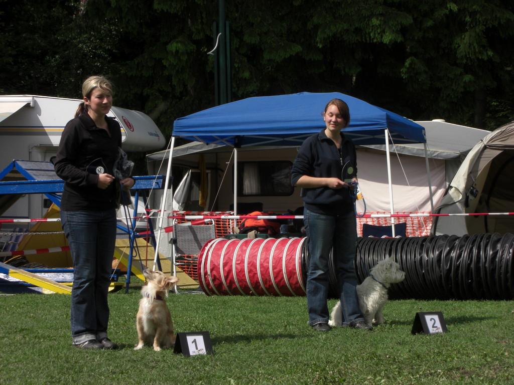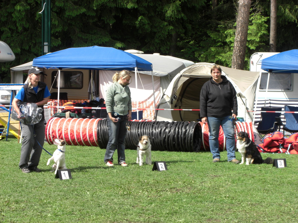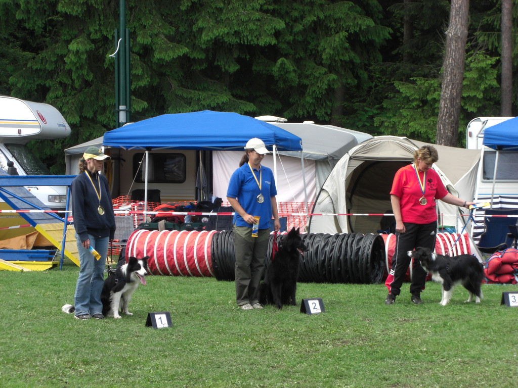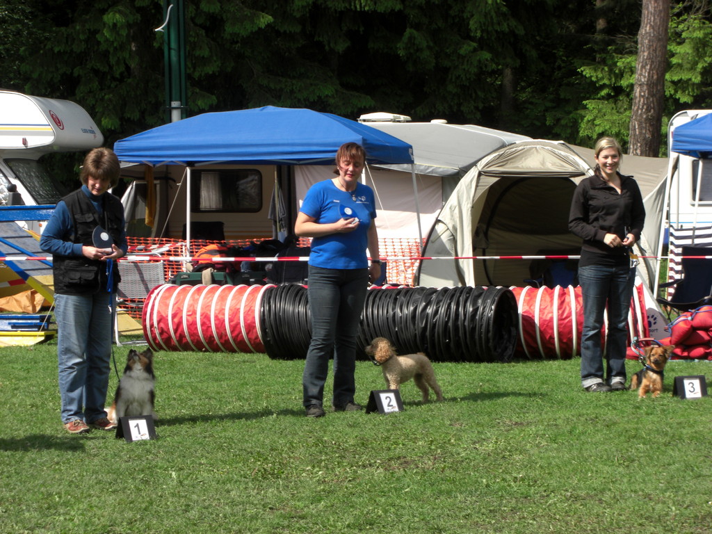 Premiere in A1 und das erste Turnier seit September 2009. Leider den Laufstegaufgang verpasst und den Slalomeingang zwar angetäuscht, dann aber nochmal beim Frauli abgesichert und vorbei gehüpft. Immerhin war unsere Leistung anscheinend so beeindruckend das wir gleich (fälschlicherweise) den Pokal für den A3-Lauf ausgehändigt bekommen haben. :o)